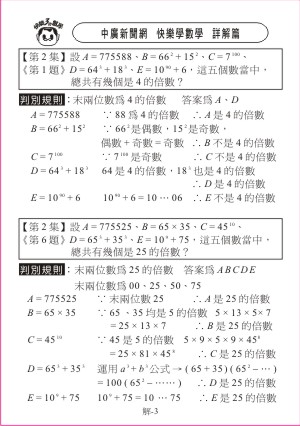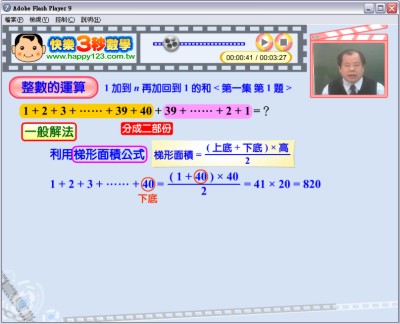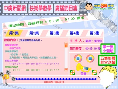 本產品係7張影音教學光碟+6張廣播教學VCD,本套教材由名師劉清田老師以輕鬆快樂的方式,傳授快速的解題技巧及三秒秘訣。7張影音教學光碟係以 flash 動畫呈現教學畫面,讓學習者可以更有效學習,建立紮實的數學基礎;並配合一套 100 種題型的六張廣播教學VCD,除了可聆聽範例題的詳細解說外,且在每集節目後均提供練習題,期達到舉一反三的效果,讓您在不自覺中對數學產生自信喔!