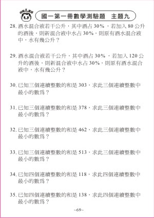本書為 " 數學快速解題秘笈 進階版第一套 (國一第一冊) " 的十個主題單元所延伸出來的測驗題,以期同學能增加熟練度、奠定紮實的基礎,獲得最好的學習效果與成績。