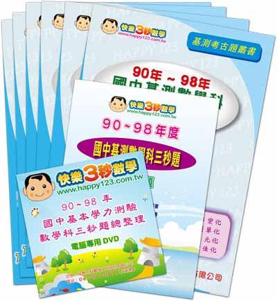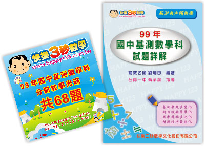 90~98 國中基測數學科影片教學光碟 DVD*699 國中基測數學科影片教學光碟 DVD*190~98 國中基測數學科試題詳解 書籍*6(第一冊~第六冊)99 國中基測數學科試題詳解 書籍*1國中基本學力測驗數學科三秒題總整理 DVD*1國中基測數學科三秒題 書籍*1