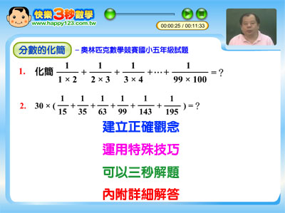 國小數學三秒解題秘訣 主題五:分數的化簡 (國小第一套)