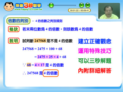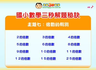國小數學三秒解題秘訣 主題七:倍數的判別 (國小第一套)