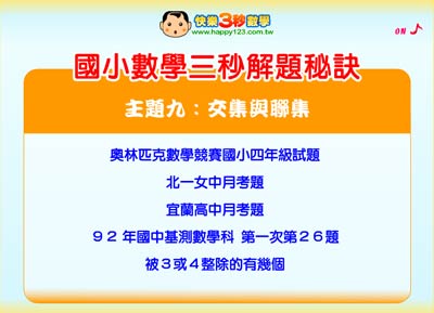 國小數學三秒解題秘訣 主題九:交集與聯集 (國小第一套)